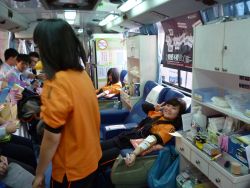 聖誕節捐血活動 時間:102年12月24日星期二08:50---17:00 地點:道茂堂前空地 對象:高中部學生及本校老師 目地:藉由捐血增進新陳代謝、維持健康、並幫助他人,達到助人且利己。鼓勵同學響應「捐血一袋,救人ㄧ命」活動。